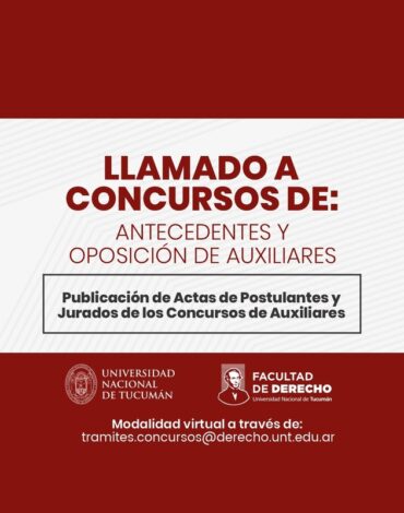 A fin de dar cumplimiento a lo establecido en los art. 8, 9 y 19 concordantes de la Resolución N° 556-2000 “Reglamento General para Concursos Docentes Auxiliares Regulares” y Resolución