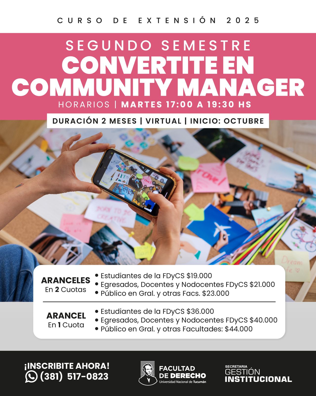 Este segundo semestre llega con nuevas oportunidades de formación: cuatro cursos de extensión de la Facultad de Derecho de la Universidad Nacional de Tucumán (UNT) que abarcan desde el manejo de herramientas digitales hasta la escritura creativa, la comunicación oral y la gestión de redes sociales.